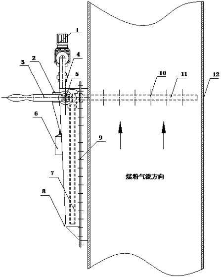 3、再打開取樣控制閥,將取樣槍頭推進到煤粉管道內(nèi)。