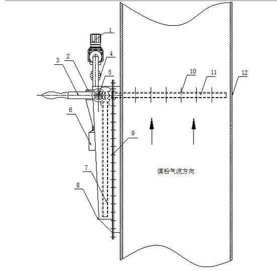 ◎ 取樣管—伸入煤粉管道中,取樣口朝向煤粉氣流來向,煤粉由此進(jìn)入取樣裝置。取樣為多點(diǎn)取樣。