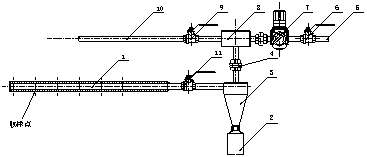 飛灰取樣過程中,所有閥門為開啟狀態(tài),當(dāng)壓縮空氣從進(jìn)氣管進(jìn)入抽氣器時(shí),在其射流作用下使整個(gè)取樣裝置內(nèi)形成負(fù)壓,因分離器和其底部的集粉瓶是封閉連接,能與外部連通的唯一進(jìn)口只有取樣管。所以負(fù)壓產(chǎn)生后促使煙道中的飛灰沿取樣管進(jìn)入取樣裝置,飛灰在分離器中分離,并進(jìn)入集粉瓶,而氣體及少許細(xì)粉從分離器的上部出口被壓縮空氣帶出,并重新送入煙氣管道中,對工作場所不產(chǎn)生污染。
